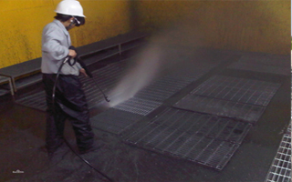 高壓水射流清洗是利用經設備增壓系統(tǒng)加壓的水由噴頭射出形成,靠高速水流切割擊碎管道內的結垢?物,并隨高壓水流出排...
